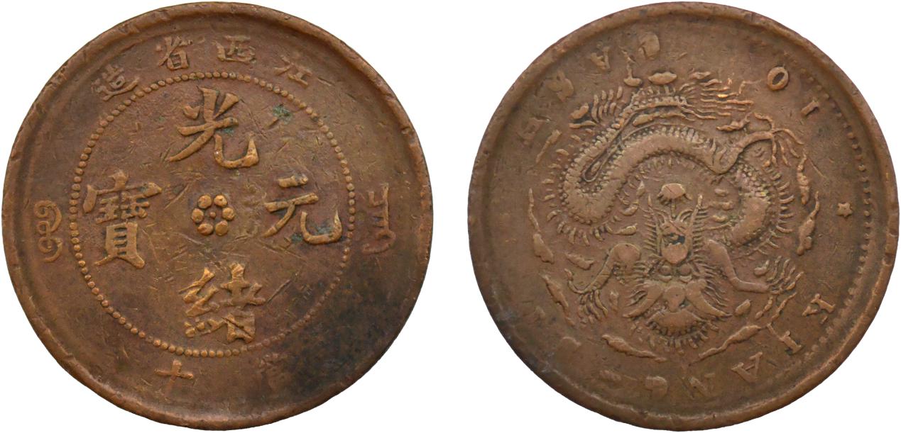 一、光绪元宝江西省造当十错版币