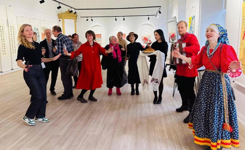 10月31日中国参展艺术家受到了俄方最高级别的文化礼遇,走进圣彼得堡美术协会展厅。开幕式上,圣彼得堡美术家协会副主席、理事长:安娜,亚历山大洛夫娜,圣彼得堡美术家协会会员:德米特里,尼古拉耶维奇、维塔利·彼得鲁克、阿努弗里耶夫·维克托、卡拉切夫·谢尔盖、纪里克·根纳季、弗拉基米尔·米哈伊洛夫(弗拉迪亚·迈)等协会成员出席活动。圣彼得堡美术协会副主席安娜女士致辞,对远道而来的中国艺术家表示热烈欢迎。俄方特别以俄罗斯传统国礼——“面包蘸盐”仪式欢迎中国代表团,这一崇高的礼节,充分体现了俄方对中国艺术家的尊重与友谊。圣彼得堡美术协会为所有参展中国艺术家颁发了荣誉证书,以表彰他们对中俄文化交流所做出的杰出贡献。