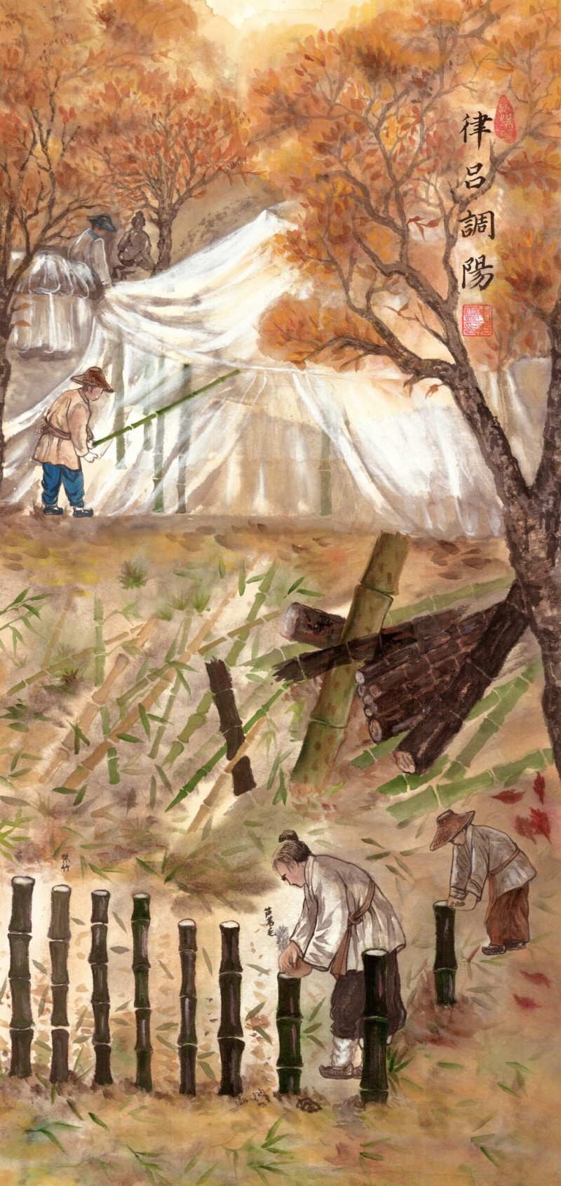 ★ 每幅画面经古法托裱,可展开为拼图100米水墨长卷