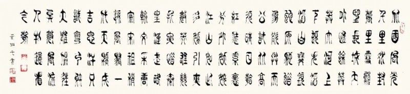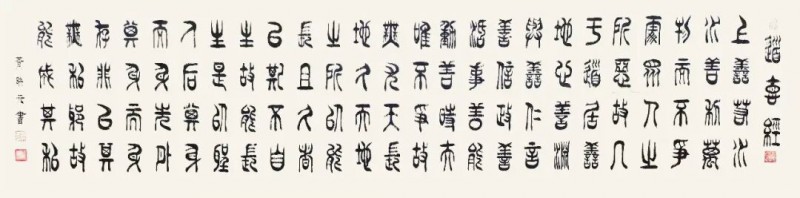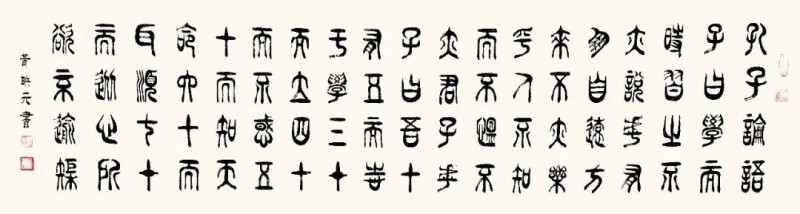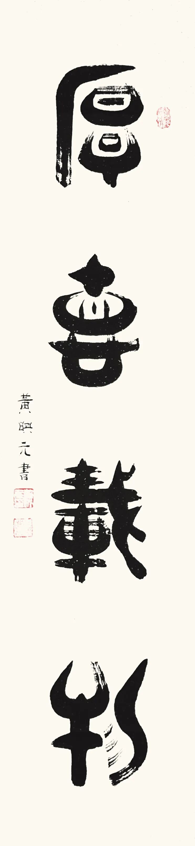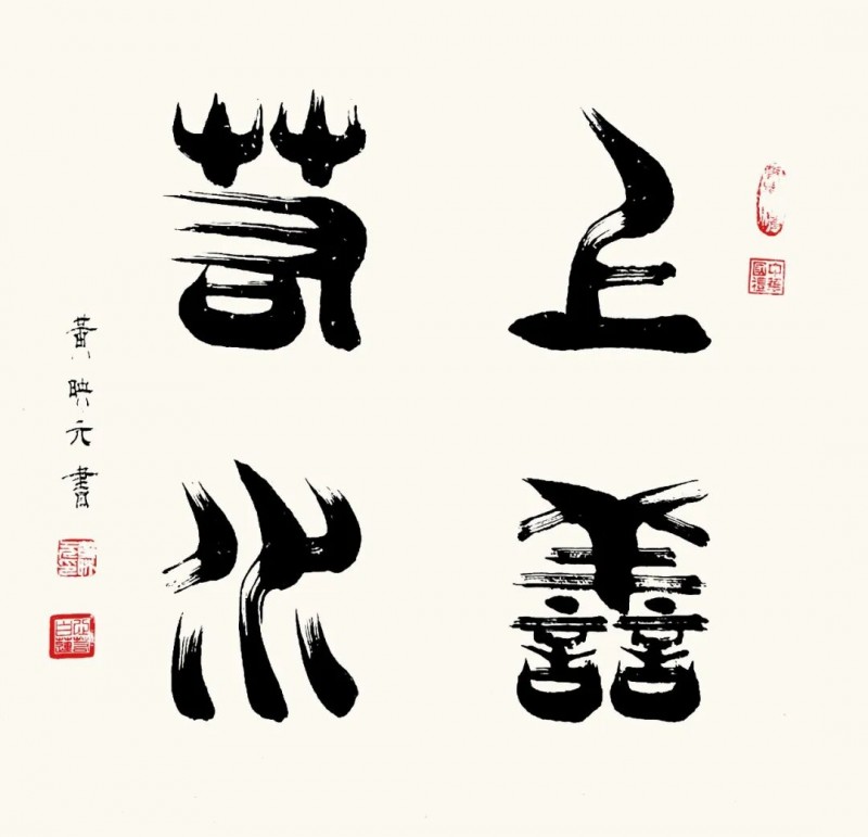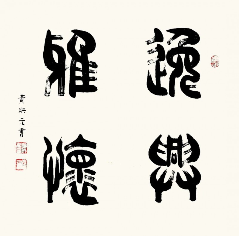 篆书作为一种古老而庄重的书体,承载着中华民族千年的文化积淀。在文化复兴的全新时代里,黄映元先生的篆书艺术不仅具备极高的文化弘扬价值,还拥有极强的装饰性,能够美化现代人的生活环境,成为当代美学的琼花玉蕊。黄映元先生的篆书以穿越时空的文化使者,将传统艺术之美引入现代文化生活空间,使人们能够感受到古典的宁静高雅。《书论》亦论:夫书者,玄妙之技也,若非通人志士,学无及之。黄映元先生的作品,以通人之法与志士之功为加载,不仅能够装点居室增添文化气息,还能陶冶人们的文化情操,使心灵得到净化升华。