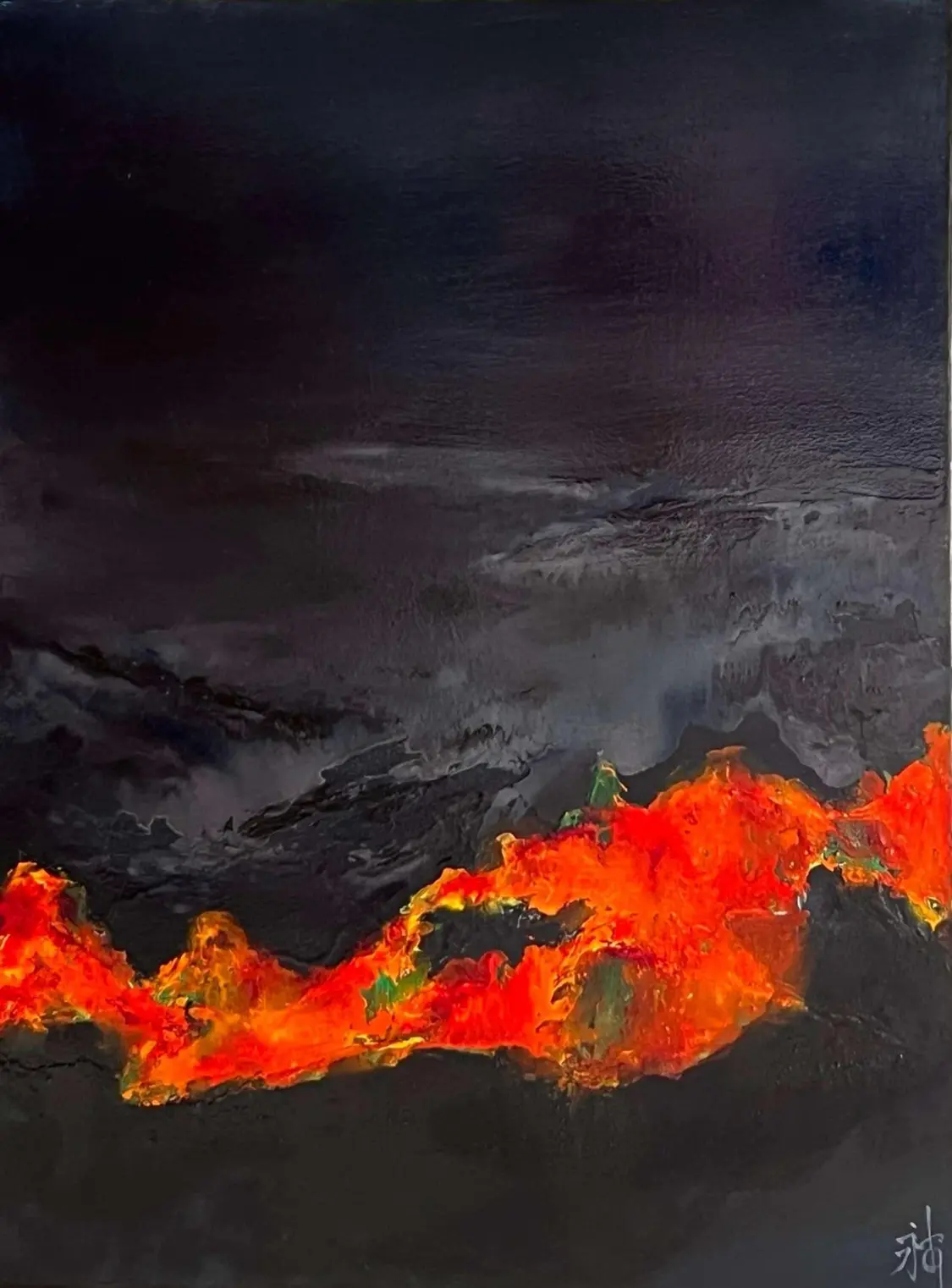 73岁的陆永安先生旅法深造43年,融汇中国水墨意境与西方抽象表现主义,开创了独特的“抒情抽象当代艺术”语言。历经一年多探索和实践《量子·山海》系列以油画为媒介,却突破传统画界束缚,通过密码般的符号与色彩,构建人类共通的视觉诗学。作品既暗合《山海经》的东方神话基因,又嵌入量子物理的当代隐喻,形成跨越文化与科技的精神对话。