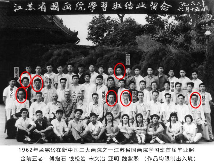 1962 年的初夏,19 岁的孟宪岱背着画板,坐了十几个小时的火车,从北京来到南京。江苏省国画院的研修班刚刚开班,院长傅抱石亲自为学员们授课,钱松喦、亚明两位副院长也常来课堂上分享创作经验,被称为 “金陵五老” 的几位大师,让孟宪岱深深感受到了南方国画的细腻与灵动。