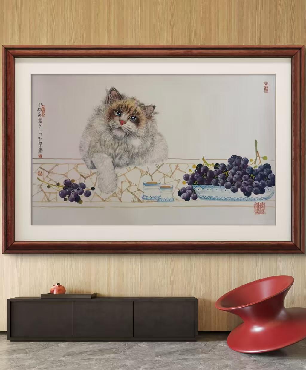 2005年海峡两岸书画邀请展,作品《福气临门》被台湾画院永久收藏。