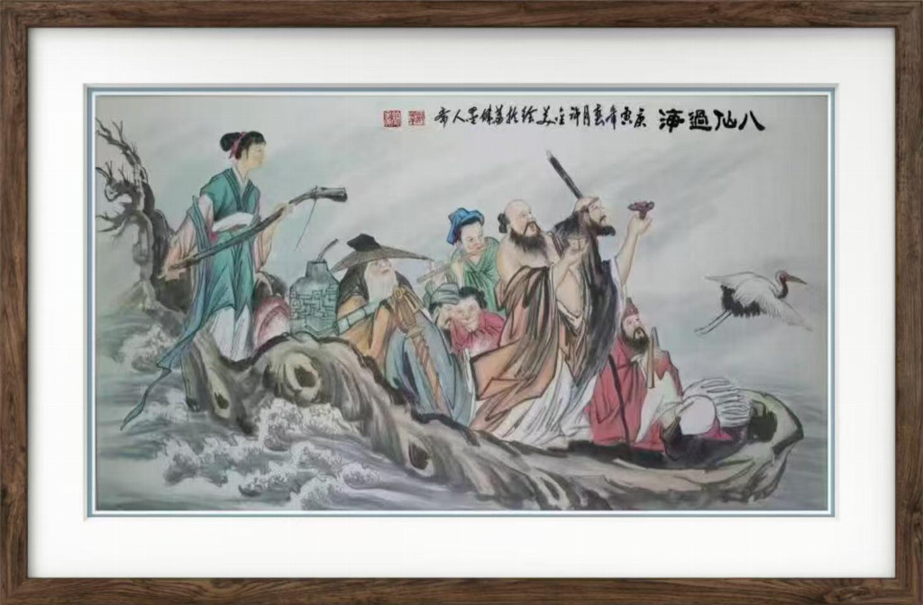 国画:八仙过海180cmx97cm(孤品)。由江西景德瓷厂烧制在瓷瓶上,作为国礼由国家领导人赠送外国来宾。
