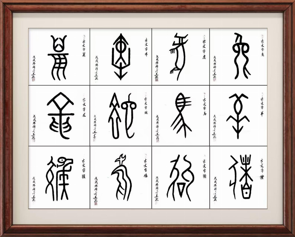 古文字十二生肖69x69Cmx12(孤品)。在国内外书画报刊典集发表8次。