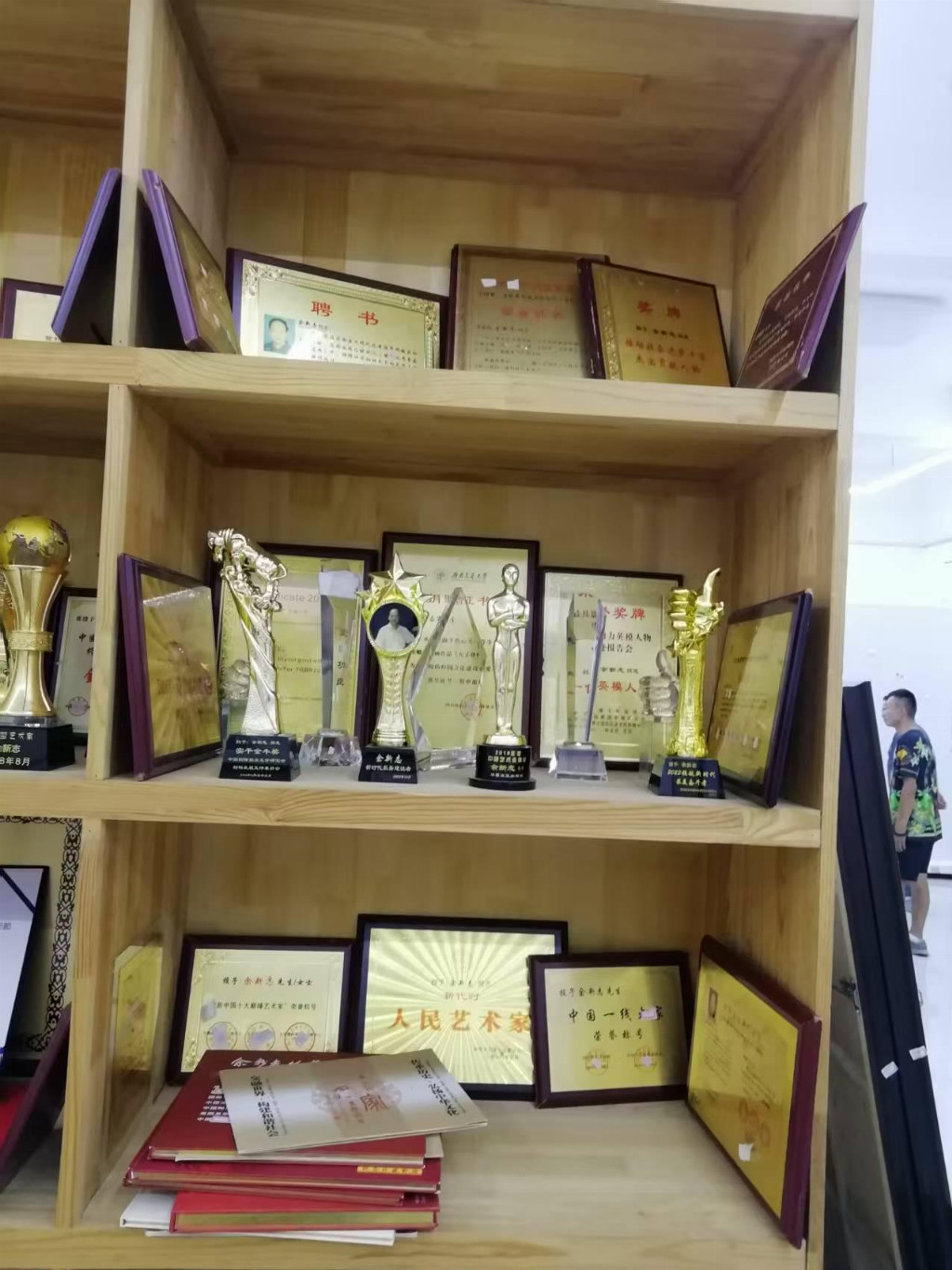 1989 年余老师就在中国美术馆成功举办个人书画展,声震画坛, 享誉海内外。2007 年应邀参加外蒙古国“纪念成吉思汗成 立 800 周年”大型活动,被授予“成吉思汗”荣誉勋章;2010 年被世界华人华侨总会评为“世界华人精英优秀人物”和“世 界华人杰出艺术家”;2011 年被国家授予“共和国杰出书画 家”勋章;2014 年被授予“全国‘五·一’劳模”勋章;2015 年被评为“非物质文化遗产传承人物”,授予“一代宗师” 荣誉称号。2017 年在美国洛杉矶举办画展,受邀走进联合 国会议大厅参加高峰论坛会,受到布鲁斯·罗茨主席的亲切 接并合影留念。2021 年余新志先生与张大千、林散之、李 苦禅、林凤眠、启功、李可染、欧阳中石、黄永玉、沈鹏等 顶尖级艺术家被评为“艺术百年·新中国十大巅峰艺术家”。 余老先生几十年来,走遍大江南北,全身心投入竹画写生创 作,收集素材数千幅,终于在 2012 年创作完成了长 103 米、宽 1.2 米的百米长卷《百竹雄魂图——万竿竹魂铸春 秋》,创下“画竹种类最多、最美的百米长卷”世界纪录, 传承千秋。2016 年百米长卷又被载入《中国国史》,为世 人留下了不朽的竹画史料、宝贵财富,永载史册。2024 年经国家艺术档案馆严格审评授予余新志为《中国四大国粹传 承人》,并颁发荣誉证书。2024 年 7 月授予《中国书画百 年巨匠传人》颁发荣誉锦旗、荣誉证书。从 1993 年以来, 中国邮政总局先后为余新志先生出版珍藏纪念邮票三十余 套,全球发行,传播文化。并先后出版发行余新志个人专著 画集数百套。上百幅作品被国家博物馆、中国美术馆等国内 外几百家艺术藏馆永久收藏陈列。其个人传略被载入《中国 人物年鉴》《中国国史》《中国历代美术家名人大辞典》《世 界人物辞海》等百余部辞书。余新志先生倾尽毕生心血,为 弘扬中华民族优秀的传统文化作出了杰出贡献。