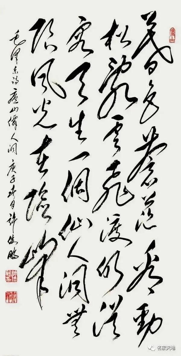 · 许俊鹏临摹毛泽东诗词书法以毛体草书为核心范本,兼融传统草书笔法,形成“临创合一”的鲜明风格,是其红色题材创作的重要方向。